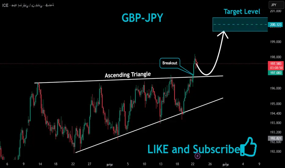 يتداول زوج #GBPJPY في اتجاه صاعد، ويخترق