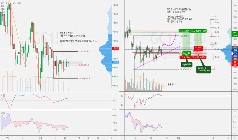 갭상하는 모습에 1497.7 시장가 매수 하였습니다. 타겟은 4H OB 하단부인 1510.6으로 설정했습니다.