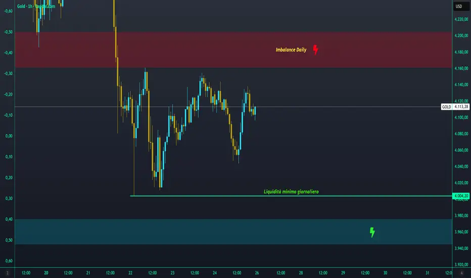 Si sta formando una zona laterale dove il prezzo continua a sbattere su e in giù, tra la resistenza dei 4150$ e il supporto dei 4020$ per oncia.