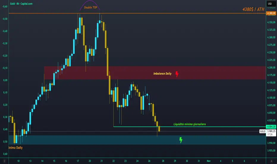 Ma non facciamoci spaventare, se notate le zone che vi avevo lasciato, si è fermato sopra il minimo Daily, rifiutando il prezzo, questo può dare una buona spinta rialzista, infatti mi immagino un rientro nella fase laterale delimitata dal minimo dei 4000$ e il massimo dei 4150$, se dovesse rientrare forte a rialzo potrei aspettarmi anche una spinta fino alla resistenza dei 4150$ per oncia, teniamo gli occhi aperti e vediamo cosa succede domani, ci sarà una news alle 15:00, e se vi chiedete perché questo orario, semplicemente è che con il cambio dell'ora adesso NY sta a -5 e non -6, quindi è tutto anticipato di un'ora, e sarà così fin quando non cambieremo l'ora anche noi.