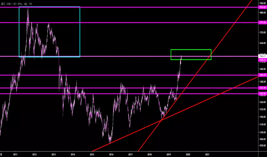 만약 이번 주에 금이 1550 위로 마감을 할 경우에는 왼쪽에 보이는 2011년도의 상승 수준까지 따라갈 수도 있습니다.