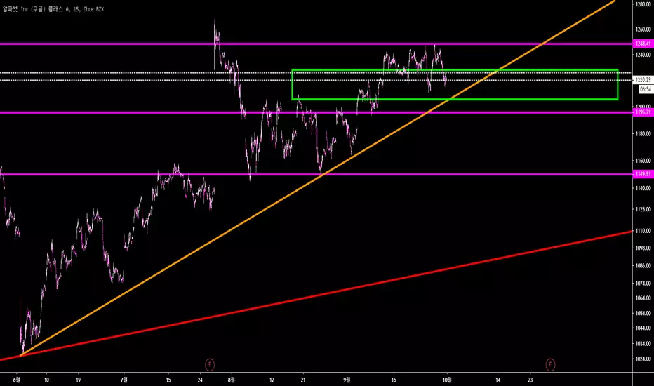추세는 계속해서 가파르게 상승 중이며 아직까지는 장기 추세선에 닿기에는 한없이 멀게 느껴집니다. 하지만 구글은 올해 6월부터 시작 된 단기 추세선에는 닿을 것으로 보이며 이 추세가 이탈 될 경우 조정 혹은 장기 상승추세선까지 터치하러 갈 것으로 보입니다.