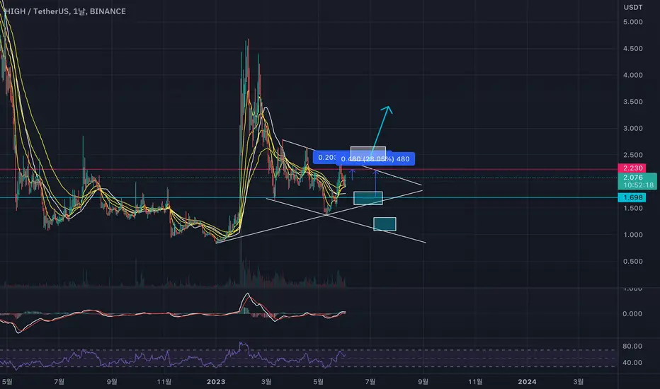 만일 돌파 전 1.8 - 1.6 구간 자리를 준다면 진입하셔서 채널 상단까지 가져가 보시고 이후 움직임을 지켜봐야하겠습니다.