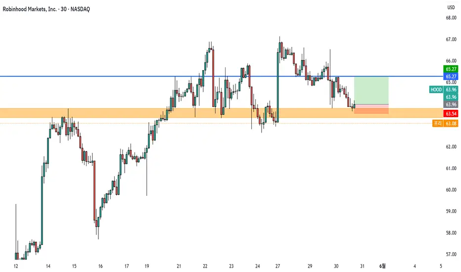 현재 HOOD 의 가격은 거래량이 터진 가격대에 머물러 있습니다.