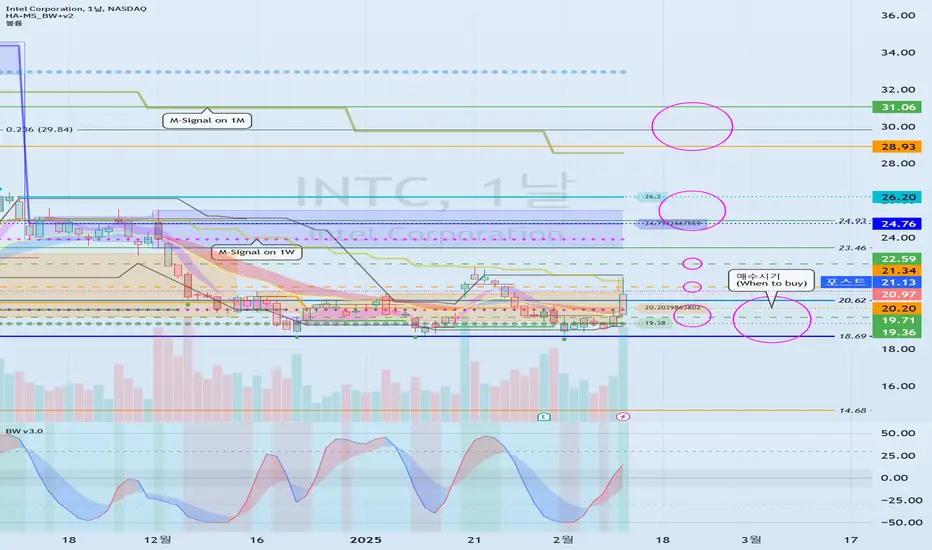 18.69-20.62 구간 다음 매수 시기는 1W 차트의 M-Signal 지표 부근에서 지지 받는 모습을 보일 때 입니다.