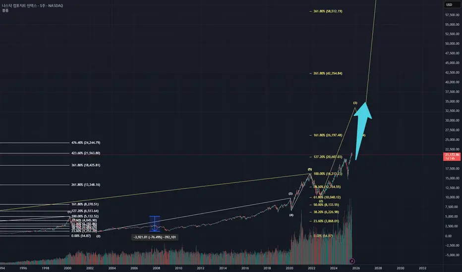 우선 나스닥의 전체 역사를 아우르는 메가울트라그랜드 5파의 종결