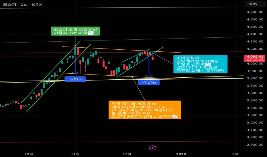 🔵오늘 코스피 파랑 '라이징웻지' 이탈후 갭하락 중