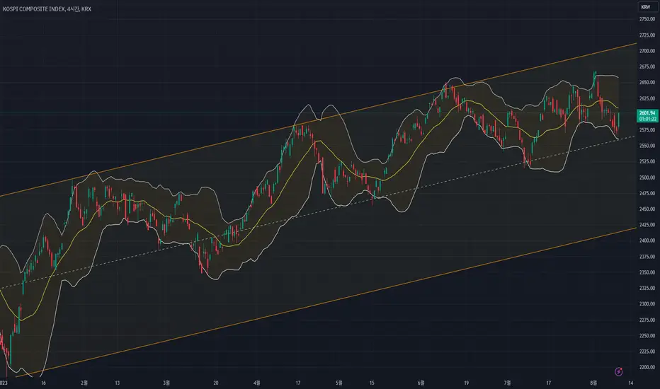 채널 중심선에 접선은 하지 않았지만 일단 그 부근에서 반등 중
