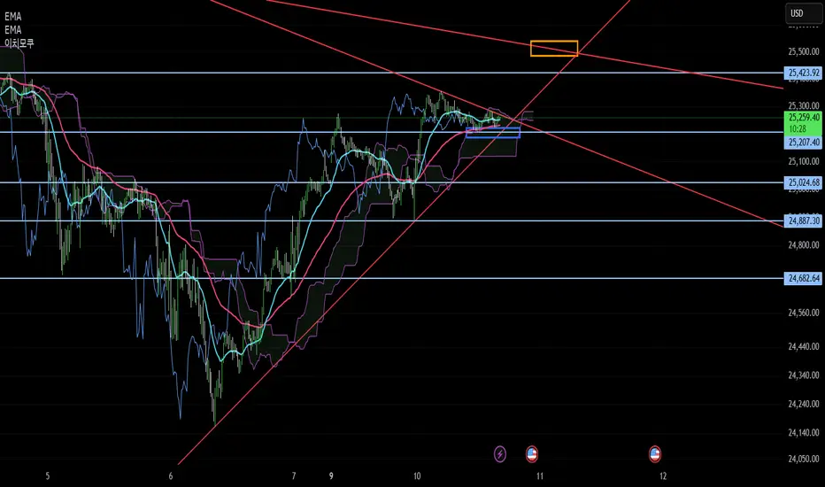 상승 추세선과 25,207 이탈 시에는 하방 압력이 빠르게 커질 수 있습니다.
