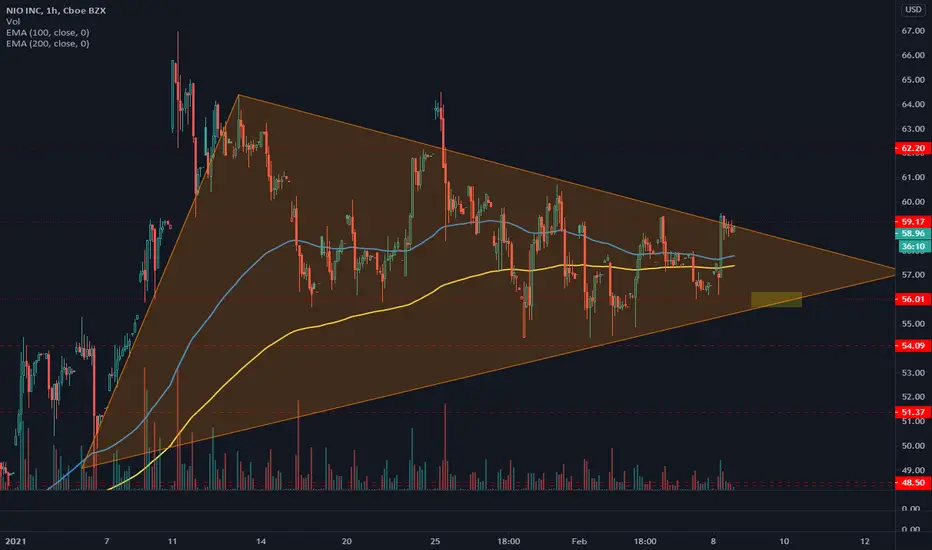 NIO is having difficulty breaking and holding above the formed triangle in the chart.