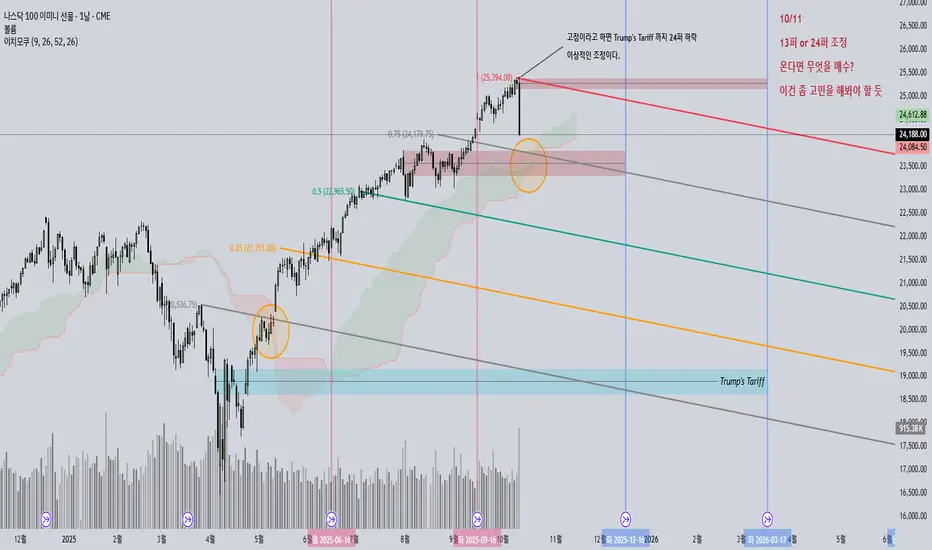 먼저, 관세 발표 이후 나스닥은 두 번의 저점을 낮추며 조정을 거친 뒤 일목균형표 상 얇은 구름대를 돌파하며 추세 전환에 성공했습니다. (좌측 차트 참고)