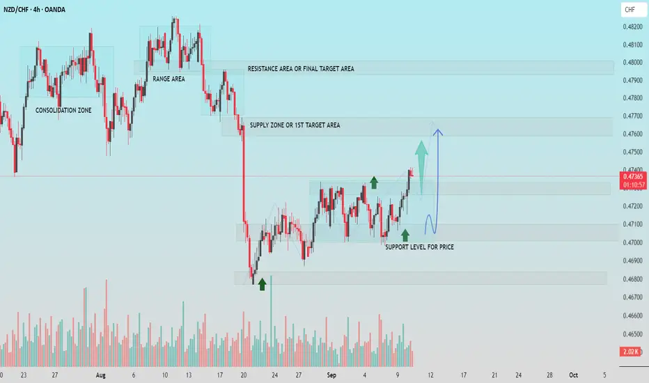 If price holds above the support level at 0.47100, a breakout toward the 0.47550 supply zone is likely, with potential extension to 0.48000.