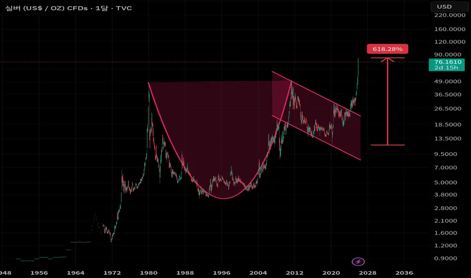 📈이 패턴을 예측해서 핸들 하단에서 은을 샀다면 약 618% 상승을 먹을수있었어.