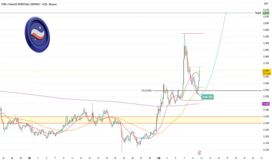 스타크넷은 0.5 되돌림 + POC 라인에서 반등이 정확하게 나오고 있습니다.