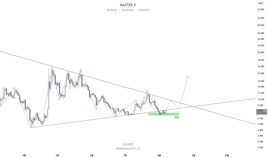 TRUMP는 수렴 하단을 하락 돌파 후 쌍바닥을 만들며 유동성을 확보했다고 판단하고 있습니다.
