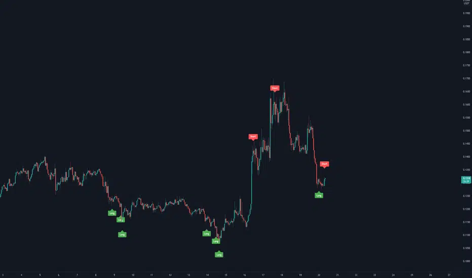 - WHALE 1은 스윙 트레이딩에 적합합니다. 이 지표는 시장의 방향성을 중점으로 포착하여 LONG/SHORT 구간을 판별합니다. 2-3일 이상 시장의 트렌드를 기반으로 하기 때문에 수차례 같은 시그널이 발생할 수 있습니다. 따라서 일반적으로 3 - 5 회 이상의 분할 매매로 포지션 생성을 추천드립니다.