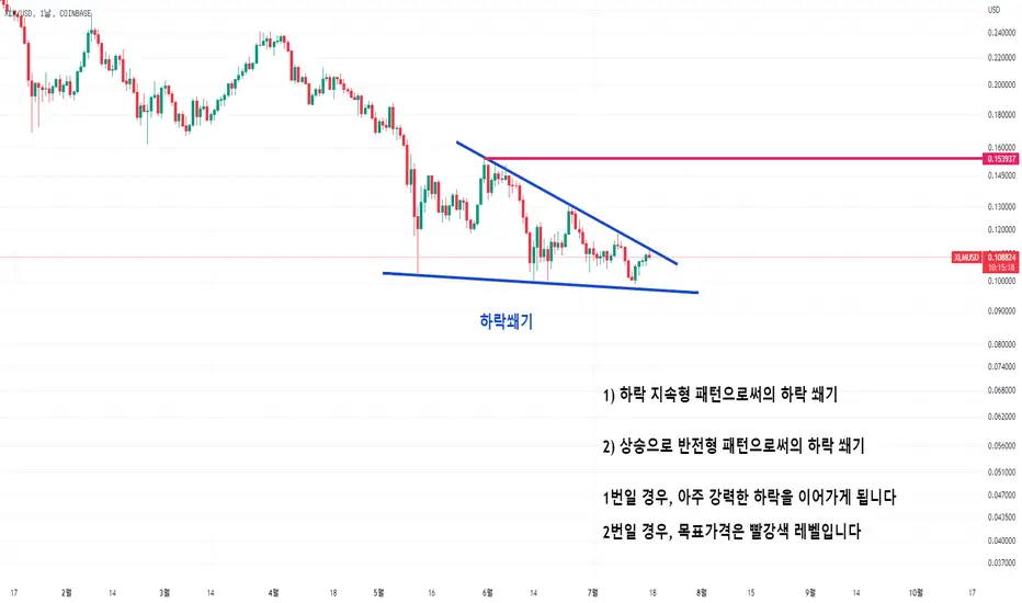 하락쐐기 내부 세부파동 카운팅을 해보면, 1번 가능성이 더 높다고 생각합니다하지만 알트코인 달러차트는 비트코인 달러차트에 의존적이므로, 알트코인 달러차트만 놓고 방향성에 확신을 가지기에는 무리가 있습니다