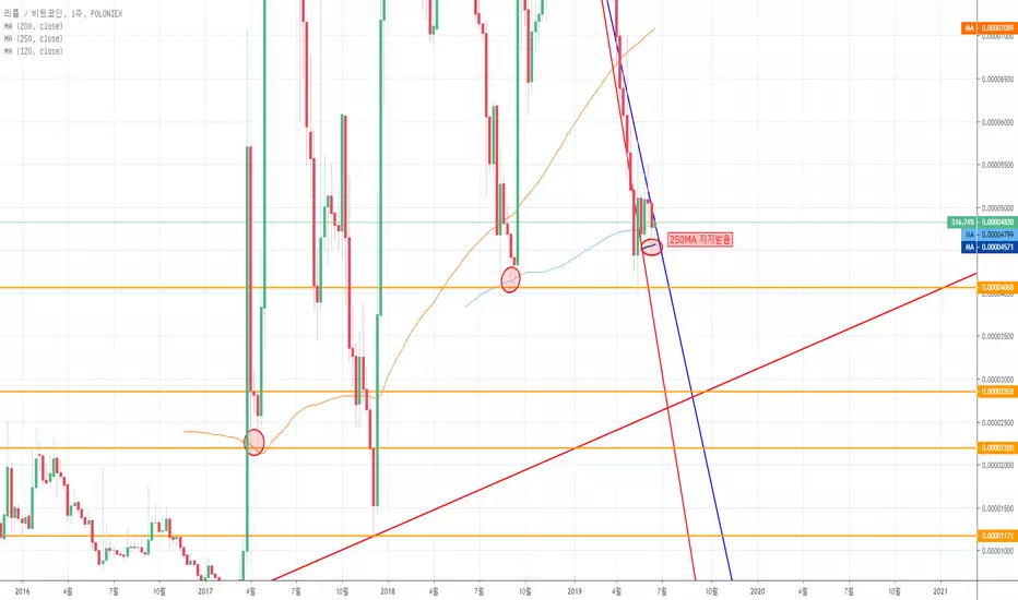 리플(XRP)은 BTC 차트에서 큰 상승을 보여주거나 보여주기 전 이동평균선 매매를 하셨던 분들이라면 높은확률로 수익을 보셨을 거라 생각됩니다.특히나 폴로닉스 거래소의 차트는 큰 신뢰성을 보여주는데 보시다시피 주봉에서 120ma가 만들어졌을 때 지지와 상승, 200MA가 만들어졌을 때 지지 상승,