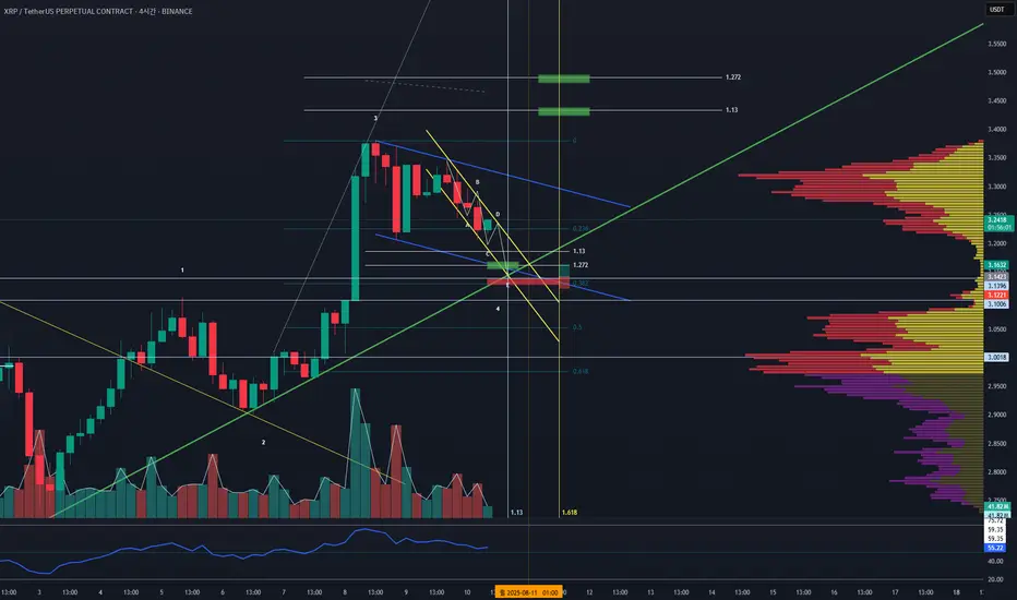 (반등 A의 정확한 높이는 알수없습니다 다만 파란박스정도 도달할것이라는것과X가 종결되면 피보나치 작도 해볼수있으나 그냥 노란채널하단 녹색채널하단이 겹치는 B에서 진입하시면 됩니다