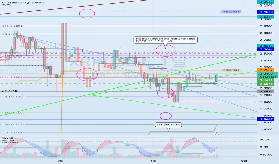 만일 상승하지 못하고 하락한다면, 반드시 1M 차트의 M-Signal 지표 이상에서 가격을 유지해야 상승세를 이어갈 가능성이 높습니다.
