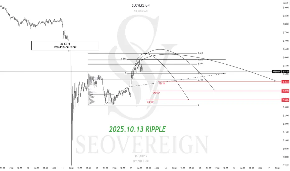 현재 리플은 이 1.414 확장 구간에서 저항을 받고 있으며,