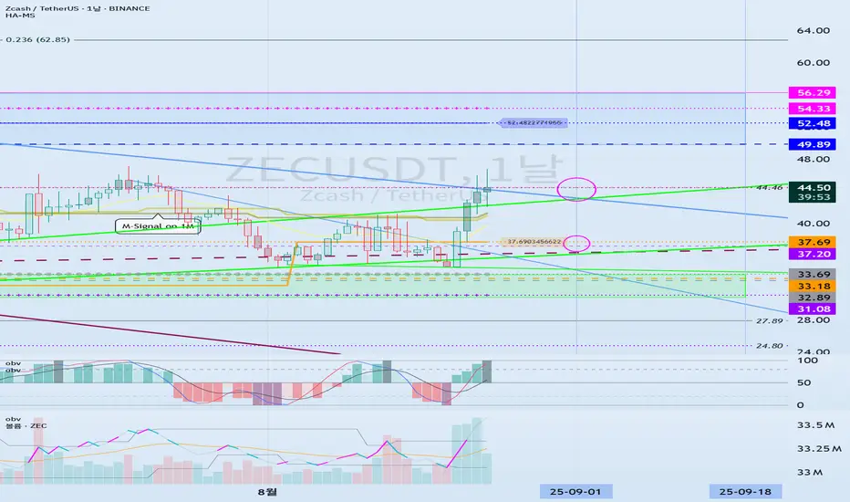 44.46 부근에서 지지 받고 49.89-56.29 이상 상승할 수 있는지가 관건입니다.
