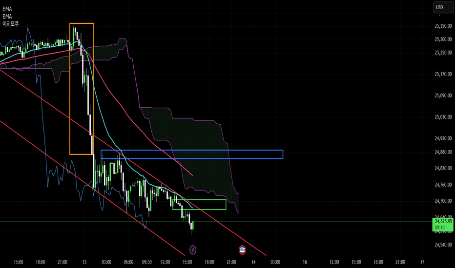 현 시점 나스닥 매수 관점은 어제의 급락으로 현재 예정된 자리가 없어보입니다.