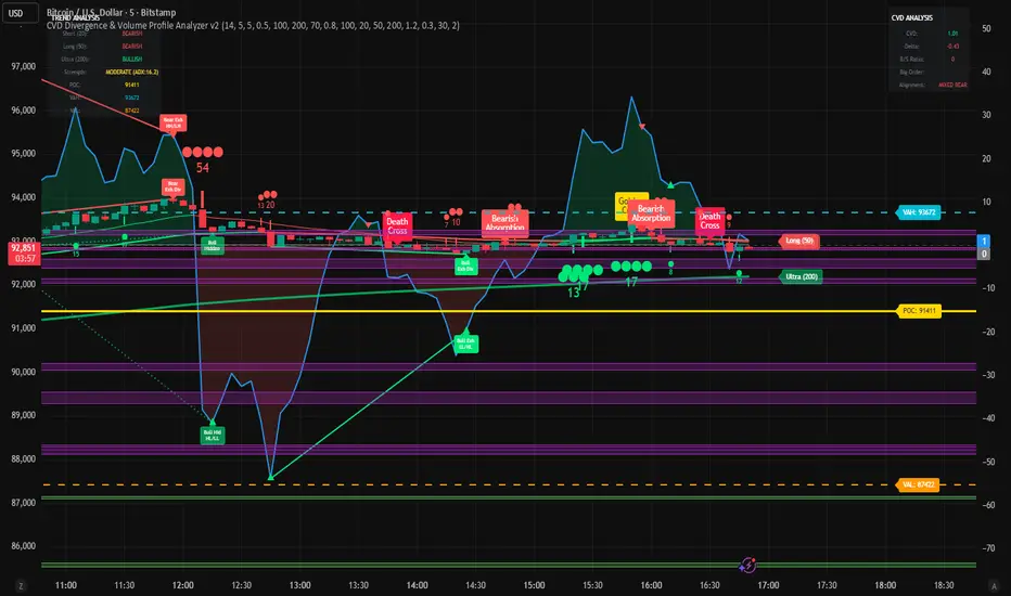 Combines CVD, Volume Profile, Divergence Detection, and Footprint Analysis to identify institutional activity and high-probability setups.