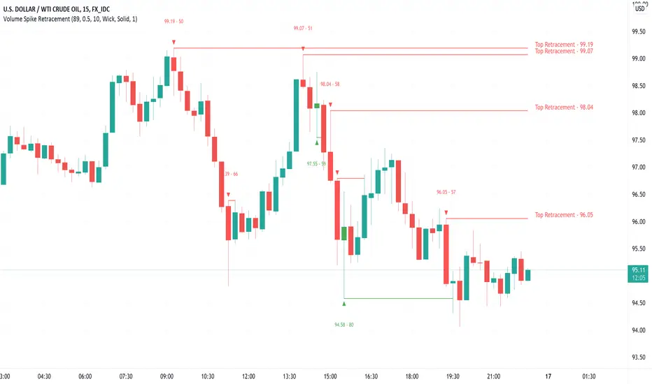 -By default, the Volume Length value is set to 89, which works well with most Timeframes following the OrderBlocks/Retracements