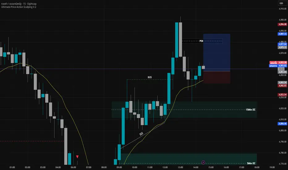The Ultimate Price Action Scalping V.2 indicator is a comprehensive trading tool that combines multiple technical analysis features to help traders identify high-probability trading opportunities. It overlays up to five configurable moving averages (MA) on the chart, allowing users to choose the type of MA (SMA, EMA, WMA, RMA, HMA, VWMA), the source price (Open, High, Low, Close, or typical price calculations), and the period for each MA. These moving averages provide a clear view of short-term and long-term trends, helping traders understand market direction, potential support and resistance levels, and trend momentum.