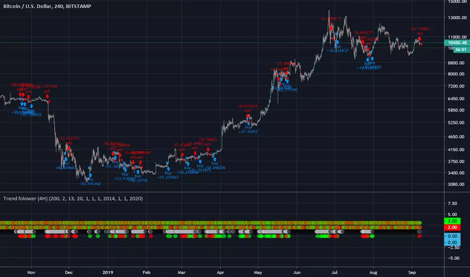 Basic trend following strategy based on weiswave combined with two custom filters. Shows consistent profits with limited drawdowns from 2015-2020 on BTCUSD.