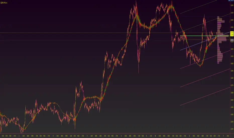 This is not a simple moving average or fixed-range profile. It is a dynamic, multi-dimensional workspace designed to identify high-probability "Interaction Nodes"—specific coordinates in price and time where structural trend, cyclical frequency, and heavy liquidity participation collide.