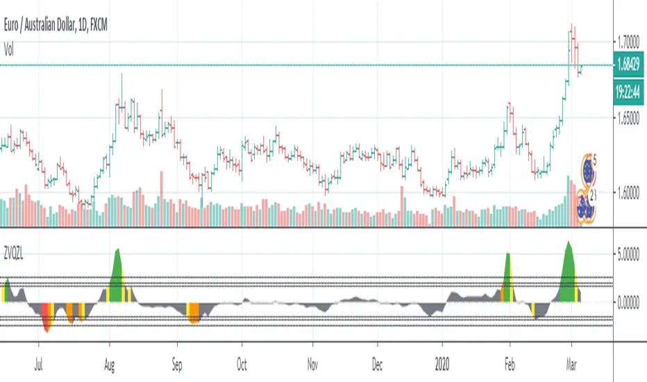 Volatility Qaulity Zero Line attempts to keep a trader out of ranging markets, but the original calculation on TradingView had to be adjusted for each instrument. To avoid this issue, I have applied a z-score calculation to the VQZL so the result is standardized for all instruments. A Z-Score is simply a value's relationship to the mean (average) of a group of values, measured in terms of standard deviations from the mean.