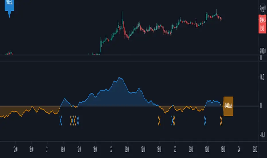 This is a Money Flow Index oscillating wave indicator that also has preset levels that can be adjusted by the user in the settings. The levels indicate how deep or high the waves are moving to