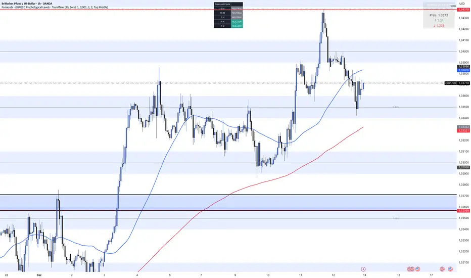 Psychological Levels – Trendflow ist ein fortschrittlicher TradingView-Indikator , der wichtige psychologische Preislevel mit einer klaren Trend- und Multi-Timeframe-Analyse kombiniert.