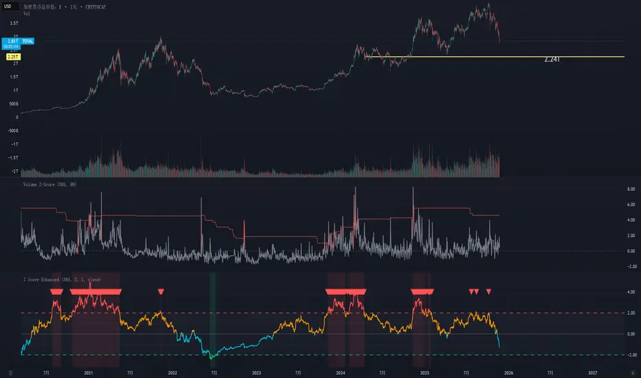 // - Z-Score measures how many standard deviations the current volume is from the mean
