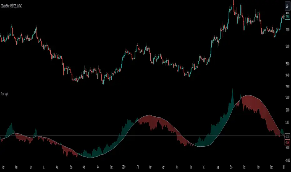 Detrending Capability: With the detrending feature, the indicator allows for the subtraction of the smoothing line from the calculated angle, highlighting deviations from the main trend. This is particularly useful for identifying potential trend reversals or significant market shifts.