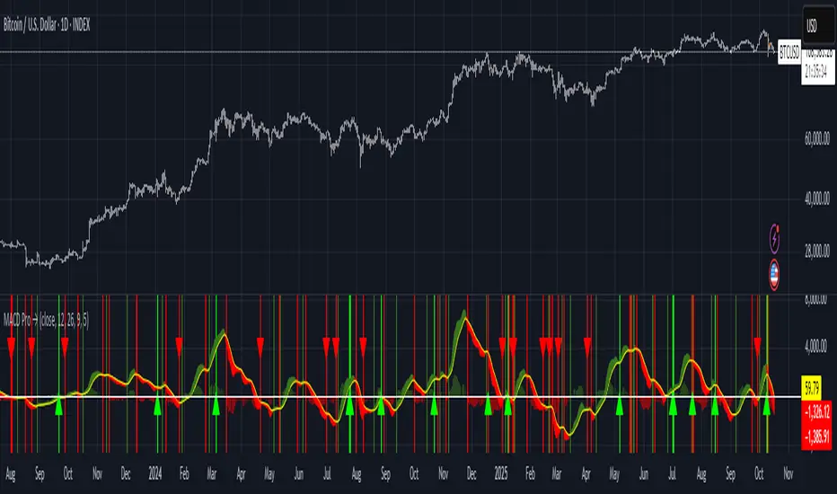 This script is an advanced and highly customizable version of the classic Moving Average Convergence Divergence (MACD) indicator for TradingView. It builds upon the standard MACD by adding professional features like divergence detection, visual enhancements, configurable alerts, and optional smoothing, making it a more powerful tool for technical analysis.