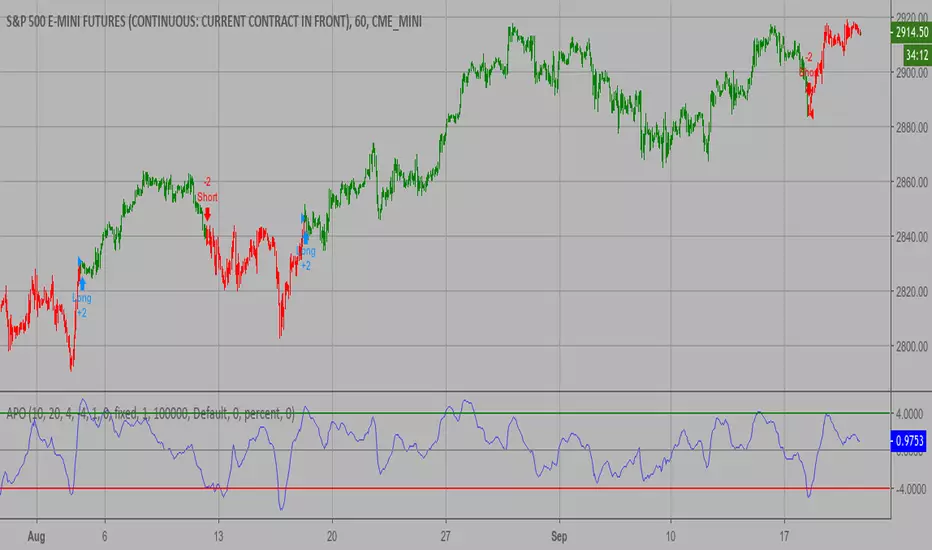 APO crossing above zero is considered bullish, while crossing below zero is bearish.