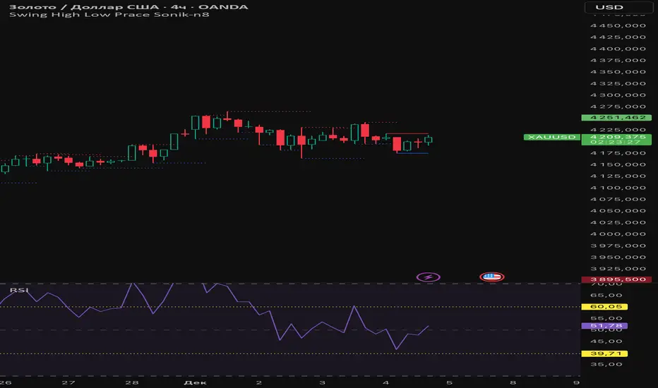 This script identifies and marks all local swing highs and lows on the price chart.