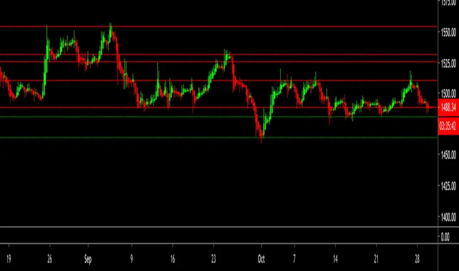 The STP Support/Resistance Levels accurately detect the key levels by identifying large swings/pivots in historical price action automatically. It identifies price levels where historically the price reacted by either bouncing or reversing the direction. Prior price behavior at these levels can leave clues for future price behavior. These tops and bottoms in price action show where lots of buyers or sellers came into the market and might act as future levels of support or resistance. By default, the code detects the last 3 significant swing highs and the last 3 swing lows. When price action breaks above the resistance line the color changes to green because it's now support. Likewise, when the price action breaks below the support line the color changes to red because it's now resistance.