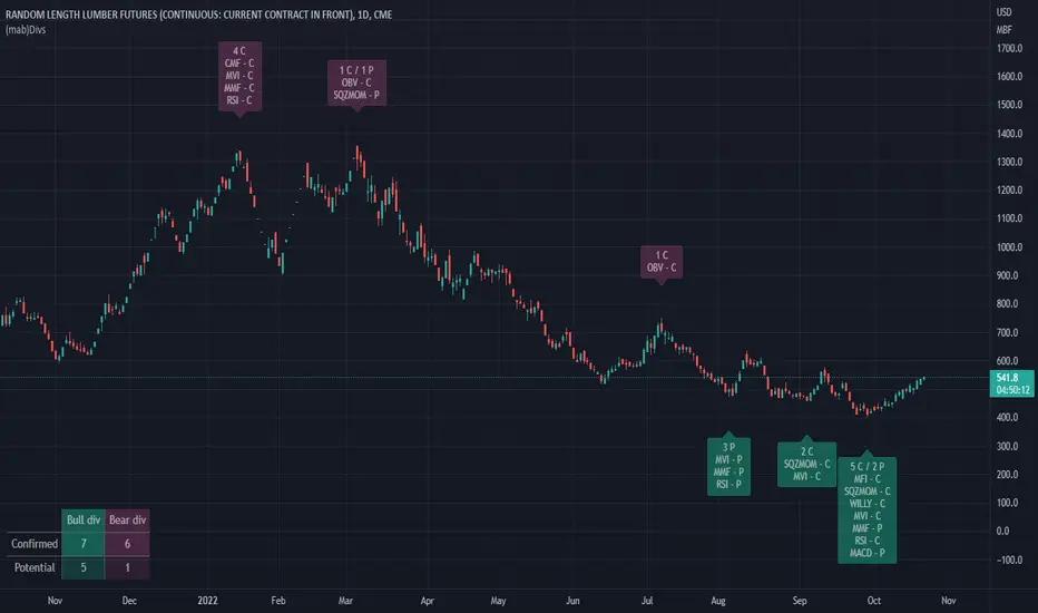In contrast to other scripts which can detect divergences, this indicator re-evaluates the status of each divergence at every confirmed candle. Divergences are potential when they are first detected. They can later be confirmed if the indicator value crosses the confirmation level. They can be invalidated before or after confirmation if the indicator value crosses the invalidation level.
