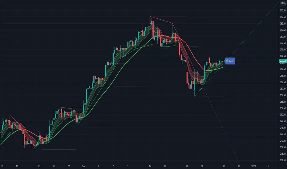 Analysis of highs and lows and construction of trend lines. Showing support/resistance levels and trend forecast.