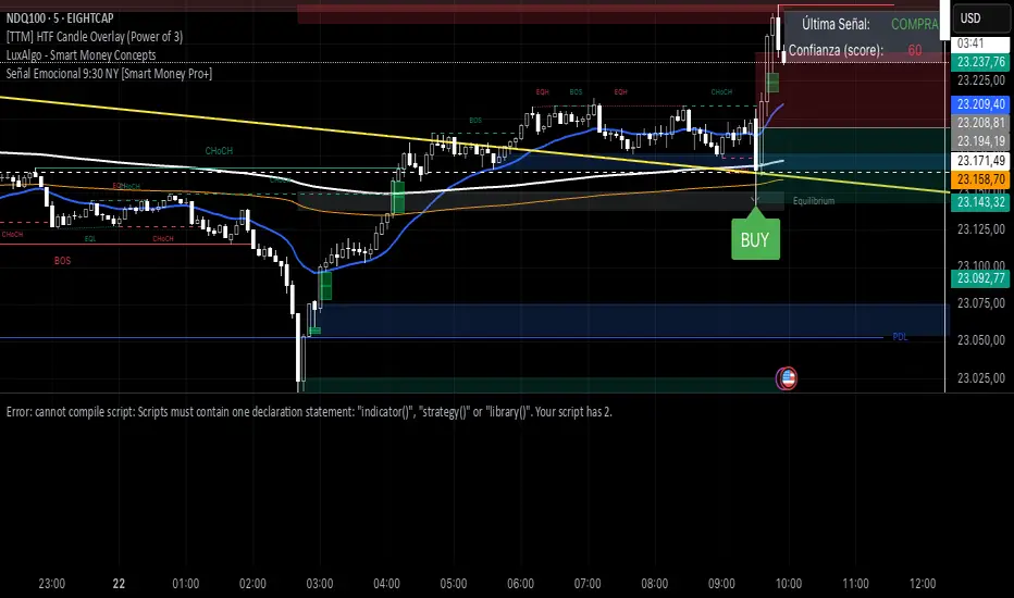 A precision-based strategy that triggers one trade daily at 9:30 AM NY. Combines trend, volume, RSI, fractals, VWAP, and emotional bias to generate high-probability BUY/SELL signals. Includes smart recovery mode to manage losses and maintain risk/reward integrity.