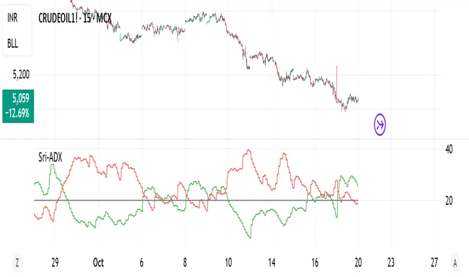 The Sri - ADX Custom TF indicator allows traders to visualize the Average Directional Index (ADX) along with DI+ and DI- lines on a custom timeframe of their choice. This tool is ideal for trend strength analysis and directional movement assessment across multiple timeframes.