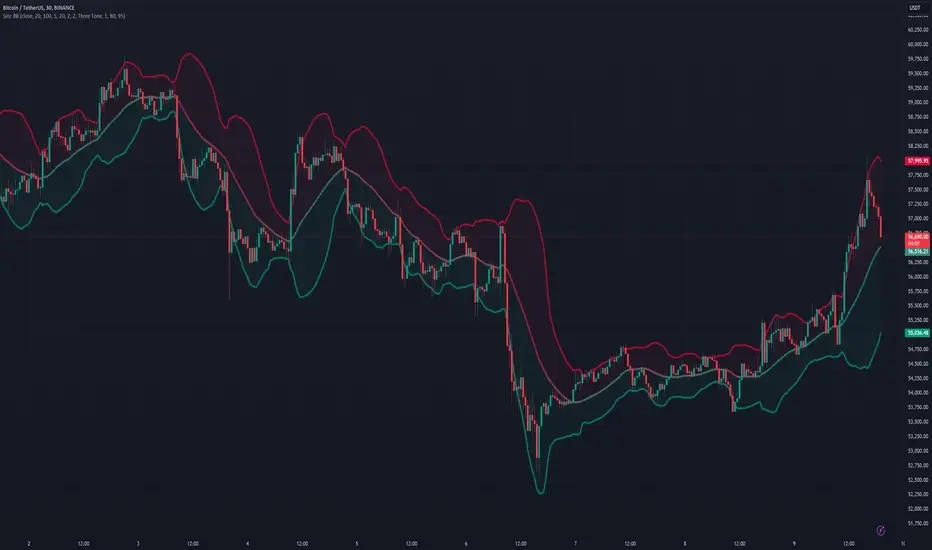 Compared to traditional Bollinger Bands, this indicator offers superior frequency response characteristics in its moving average and a more refined volatility measurement, especially in centered mode. These features allow for a more nuanced analysis of price trends and volatility patterns across various market conditions and timeframes.