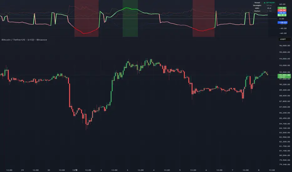This indicator utilizes standard ADX calculations and focuses on intuitive visual separation of signals.