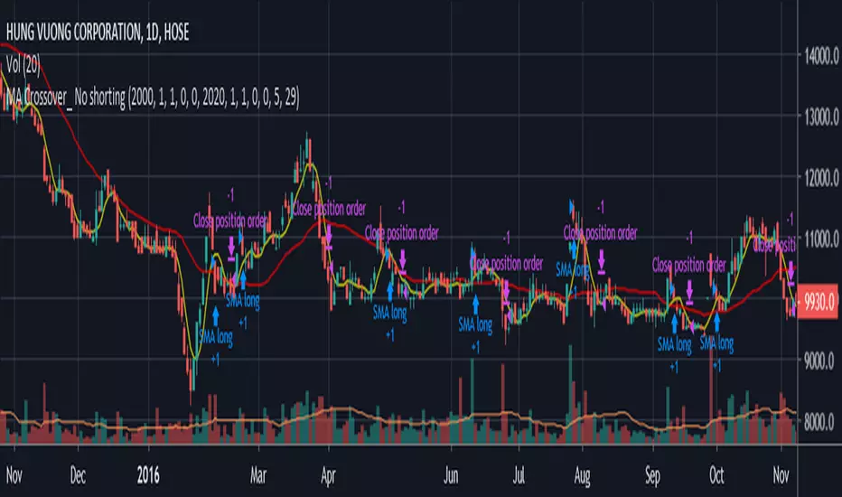 This script is intended for back testing MA crossover strategy specifically for Vietnam Market, which does not allow short selling and has a settlement period of T+3.