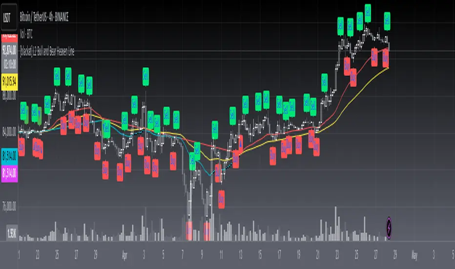 OVERVIEW📈 [blackat] L2 Bull and Bear Heaven Line is an advanced TradingView indicator that helps traders identify potential price reversals and trend changes. This script combines moving averages and custom calculations to provide clear buy/sell signals and turnaround points.