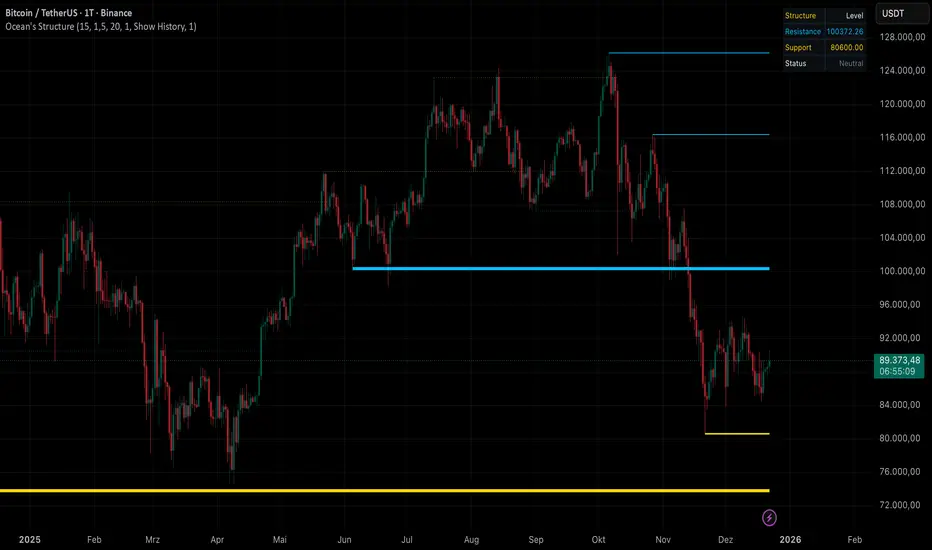 Ocean's Smart Structure [Pro] is a next-generation technical analysis suite designed for precision traders. Unlike standard pivot indicators that clutter your chart with noise, it uses a Volatility-Adaptive Clustering Algorithm to merge, filter, and validate the levels that actually matter.